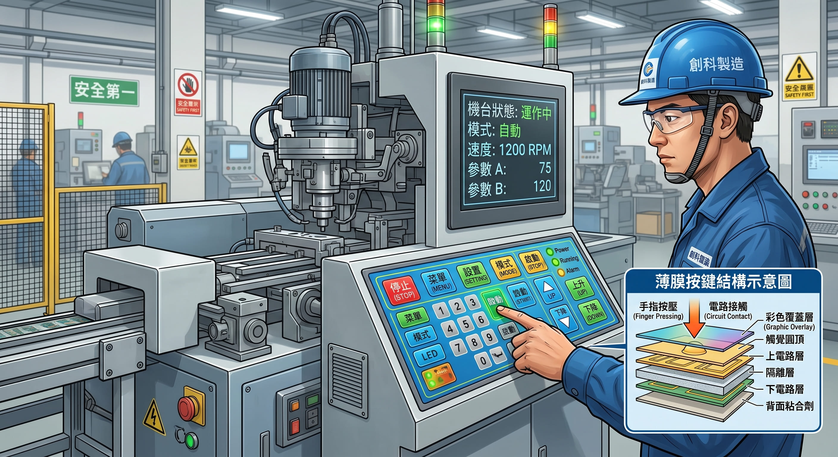 優質的薄膜按鍵開關,就像機台與人之間溝通的樞紐。它得夠堅韌,能在惡劣的工作環境中撐住;同時也要夠細膩,能準確接收操作員的每一次指令,穩定地將觸覺轉化為電氣訊號,不出錯。